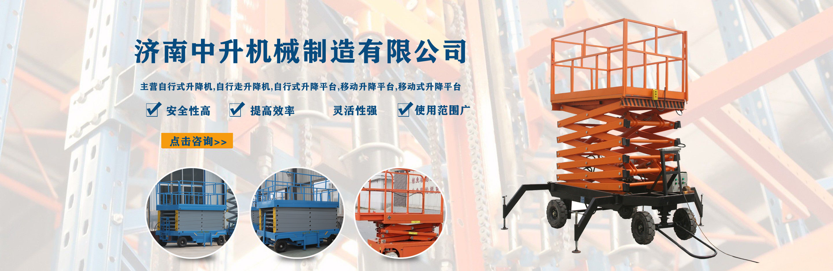 濟(jì)南中升機械制造有限公司主營自行式升降機,自行走升降機,自行式升降平臺,移動升降平臺,移動式升降平臺等產(chǎn)品,產(chǎn)品廣泛用于廠房維護(hù)、工業(yè)安裝、設(shè)備檢修、物業(yè)管理、倉庫、航空、機場、港口、車站、加油站、體育場、展覽館等多種行業(yè)和場所, 公司設(shè)備精良、工藝合理、檢測手段齊全,技術(shù)力量充足,公司創(chuàng)立伊始即本著“專注、專心”的經(jīng)營理念,依托技術(shù)團(tuán)隊優(yōu)勢和設(shè)備硬件保障,全力打造良心的升降平臺企業(yè)。 我公司始終以“品質(zhì)為本,服務(wù)至上”作為企業(yè)宗旨。只要你訂購了我公司的產(chǎn)品,無論你身處何方,我們都會及時派出技術(shù)人員為你服務(wù)!...